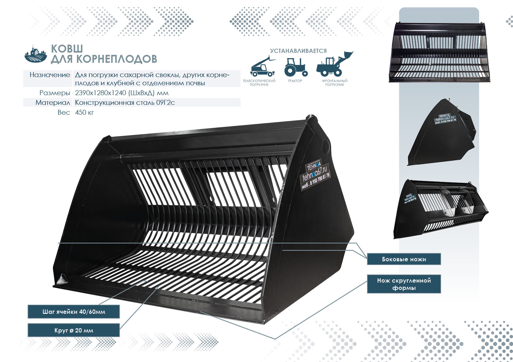 •Шаг ячейки 40/60мм •Ширина - 2390 мм •Высота - 1240 мм •Длина - 1240 мм •Боковые ножи •Нож внизу скругленной формы